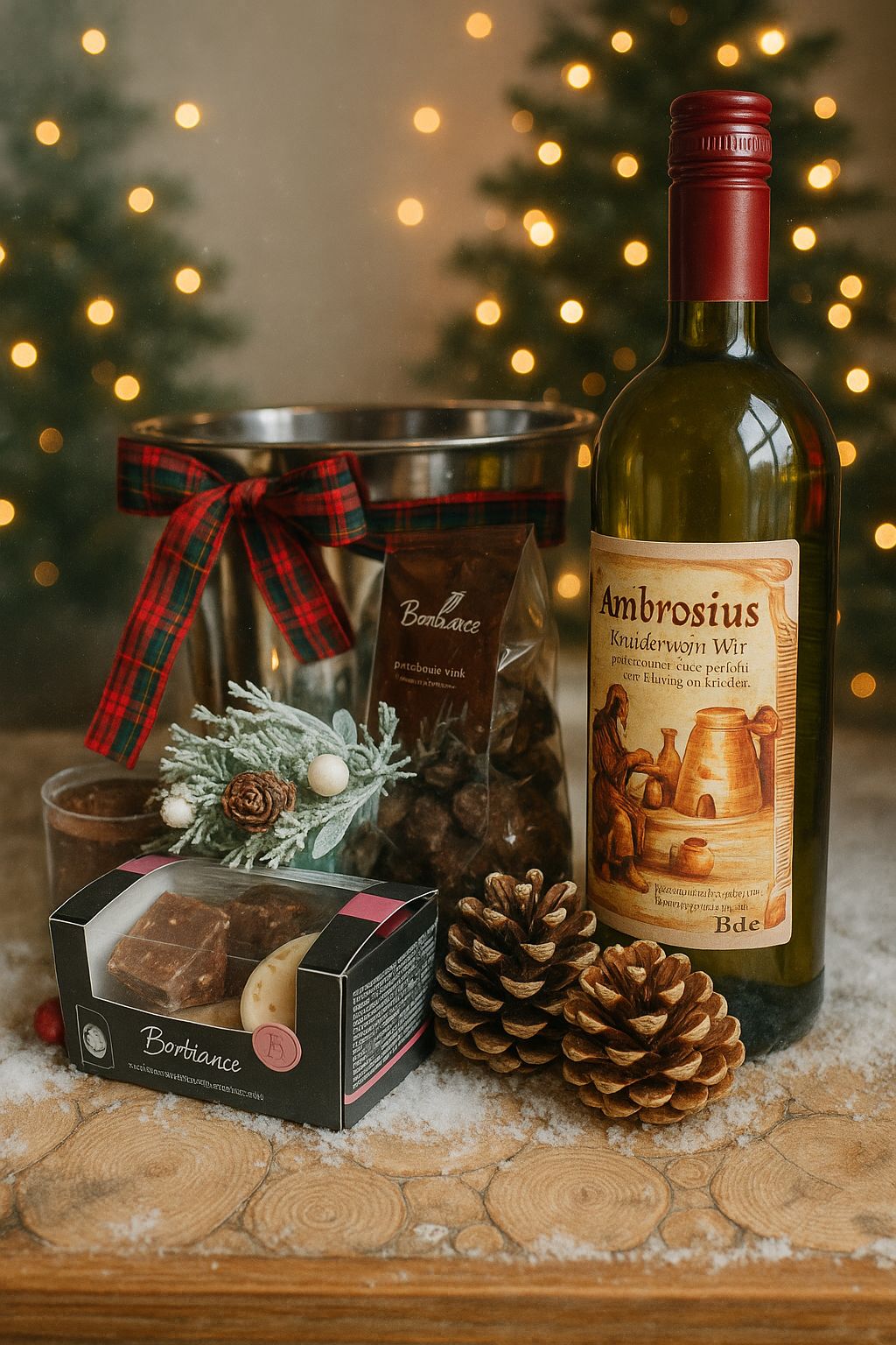 Maak van deze kerst een feest om nooit te vergeten met Kerst in een Koeler. Dit luxe pakket bestaat uit een stijlvolle zilveren wijnkoeler, een fles ambachtelijke Ambrosius kruidenwijn en heerlijke chocolade om samen van te genieten. Afgewerkt met feestelijke kerstdecoratie straalt het geheel warmte, gezelligheid en verfijning uit.